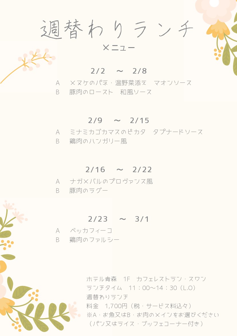 2026.2.4 - [ホテル青森からのお知らせ・レストラン/お食事]