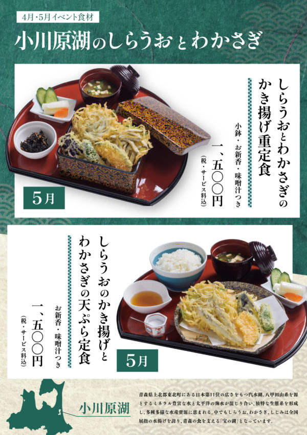 青森県産食材「小川原湖のしらうおとわかさぎ」メニュー