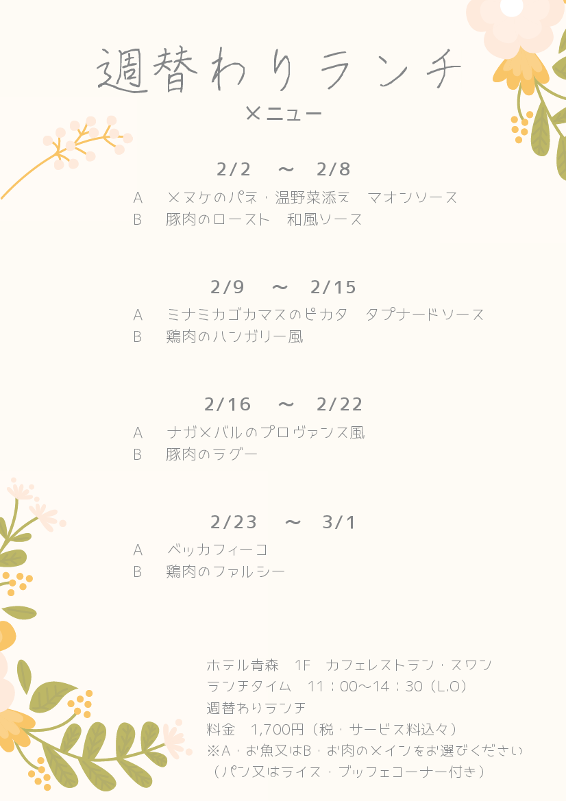 2026年 2月の週替わりランチ ~スワン~