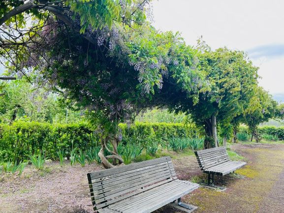 行ってみると、そんなに広くないこじんまりとした公園なのですが、藤の花がたくさん咲いていました♪